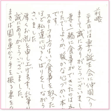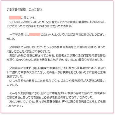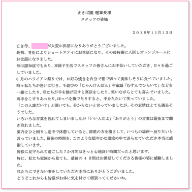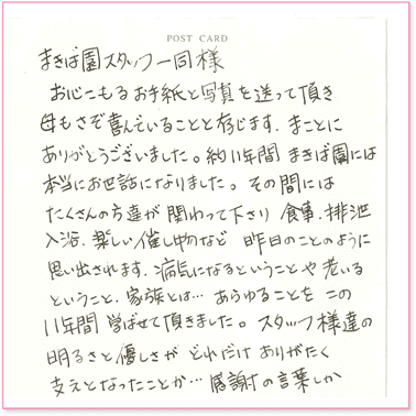ご家族様にとって大事な方は、私たちにとっても大事なお客様です。まきば園で働くスタッフすべての心をこめて、介護をさせていただきます。