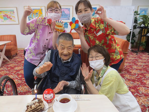 プライバシーを尊重した全室個室、ユニットタイプの特別養護老人ホームです。スタッフはみんなアロハシャツ姿で、いつでも笑顔いっぱい。〝おもてなしの心〟を大切にし、行き届いた介護でお客様のゆったりとしたおだやかな日々の暮らしをサポートしています。